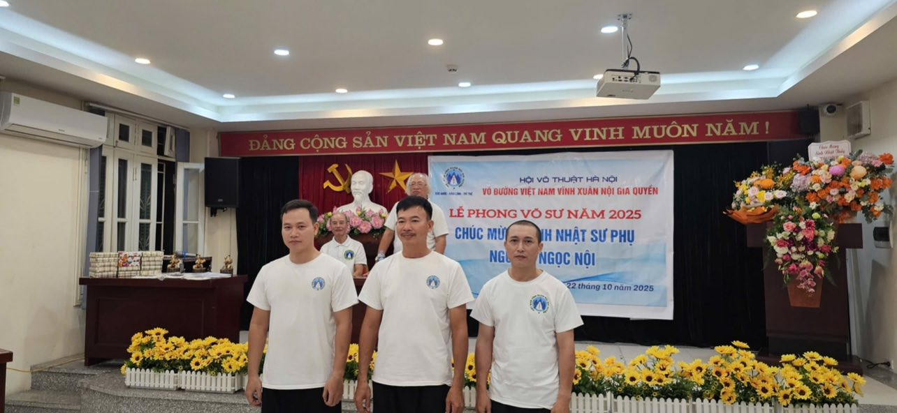Hôm qua ngày 22/10/2025, một ngày thật đặc biệt trong cuộc đời của tôi. Đây là lần thứ ba tôi tổ chức phong võ sư cho các học trò của mình đúng vào ngày sinh nhật của tôi. Lần đầu vào ngày 22/10/2021, tôi tổ chức phong võ sư cho học trò Vũ Anh Tuấn ở Ba Lan, một người học trò xuất sắc trong mọi mặt đối với tôi cùng những thành công tuyệt vời trên con đường Vĩnh Xuân Nội Gia. Lần thứ hai vào ngày 22/10/2022, tôi phong tặng danh hiệu Võ sư cơ bản của Võ đường cho bốn học trò lớn tuổi ở Võ đường Việt Nam Vĩnh Xuân Nội gia tại Việt Nam. Đây là một dấu ấn quan trọng trong quá trình phấn đấu vươn lên để trở thành những người thầy thực thụ trong Võ đường Vĩnh Xuân Nội Gia. Và lần này, lần thứ 3, tôi tổ chức ở Việt Nam để phong võ sư cho 3 học trò của tôi.