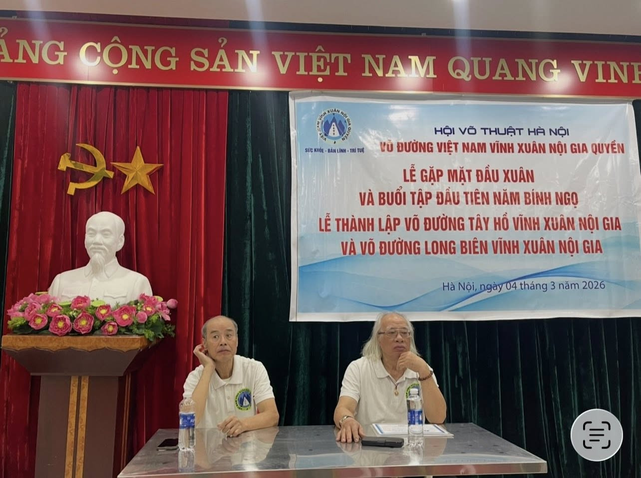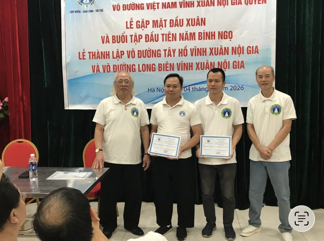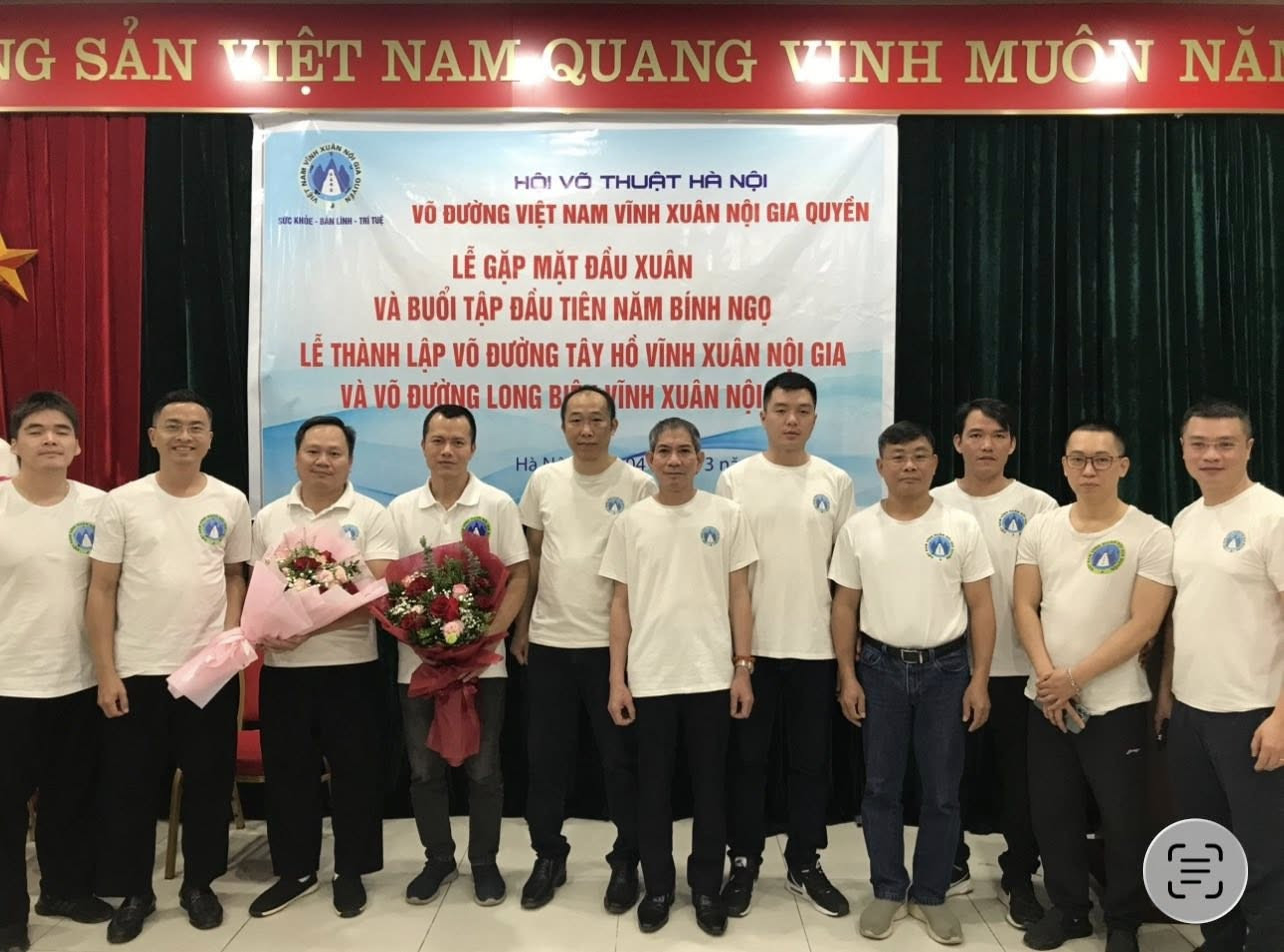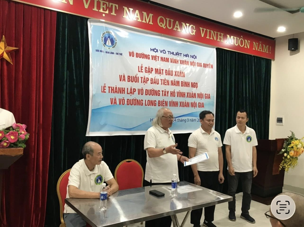Sau những lời chúc tốt đẹp nhất tôi chúc các học trò của mình cùng gia đình, tôi đã thông báo chính thức trong Võ đường về việc thành lập hai võ đường: Võ đường Tây Hồ Vĩnh Xuân Nội Gia do võ sư Lâm Thành Long làm Chủ nhiệm Võ đường và Võ đường Long Biên Vĩnh Xuân Nội Gia do võ sư Nguyễn Ngọc Tiến làm Chủ nhiệm Võ đường. Tôi đã mời hai võ sư - Chủ nhiệm Võ đường lên trao Quyết định thành lập Võ đường.