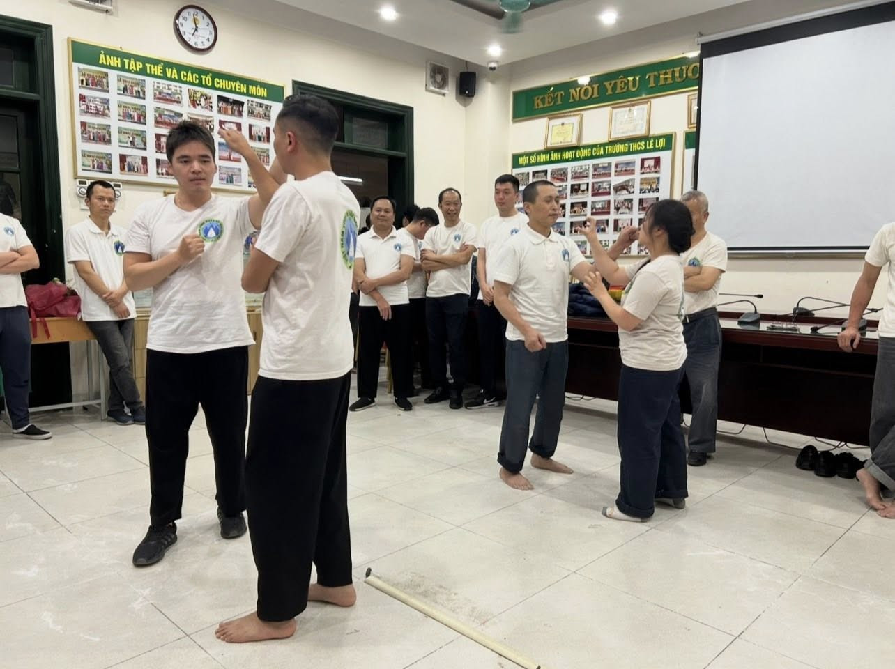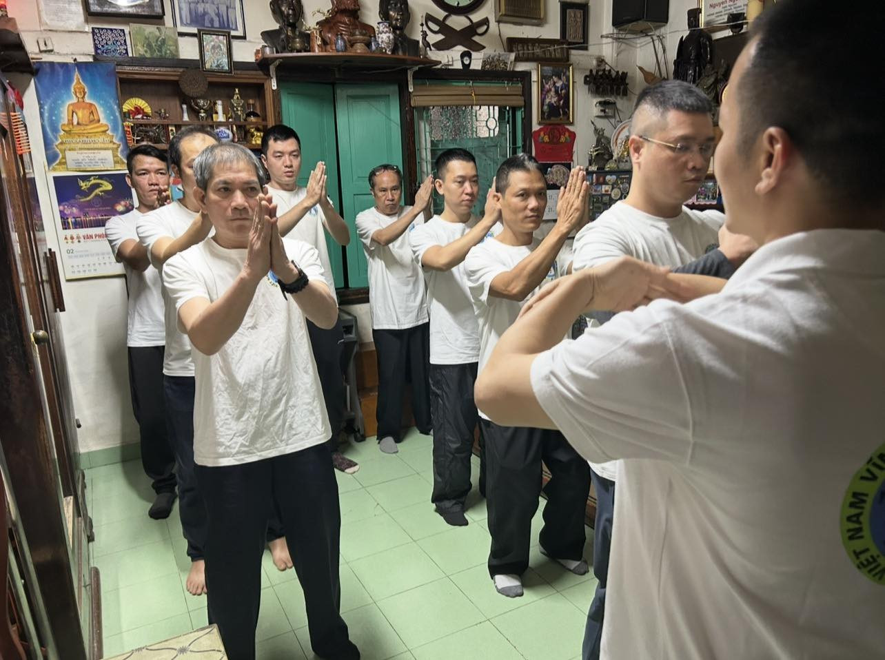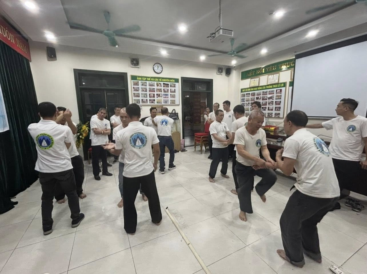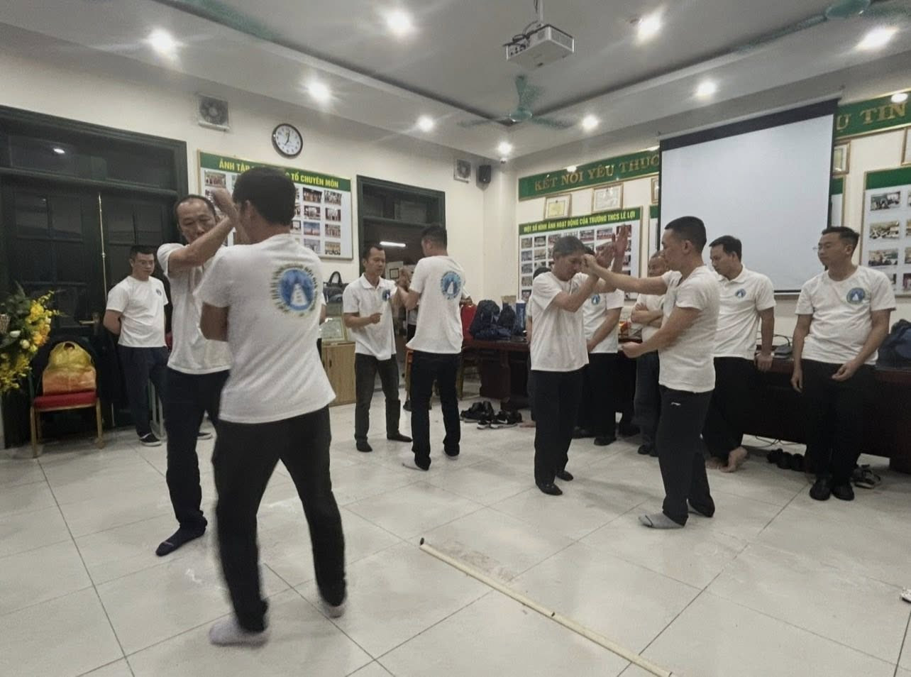 Sau khi trao Quyết định thành lập Võ đường cho hai võ sư, học trò của tôi, sau khi mọi người tặng hoa và chụp ảnh kỷ niệm, với hai võ sư, Chủ nhiệm Võ đường cùng với chụp ảnh toàn thể các anh em có mặt trong buổi Lễ với tôi, các lớp đã lần lượt tập một số bài quyền đối luyện để lấy ngày tốt đầu năm. Tôi cũng đã tham gia dạy bài 108 tại chỗ trong nhóm các võ sư vào tay với nhau.