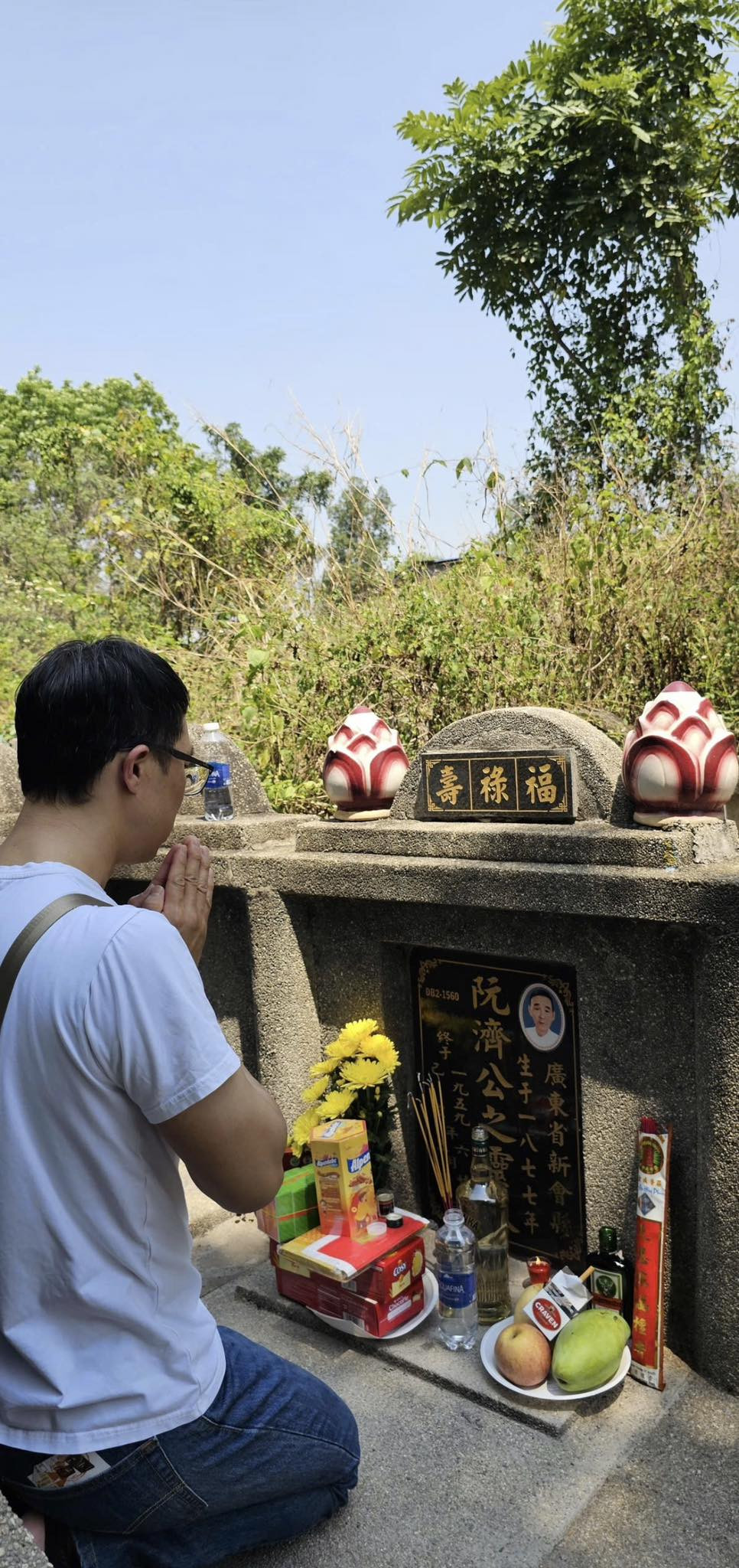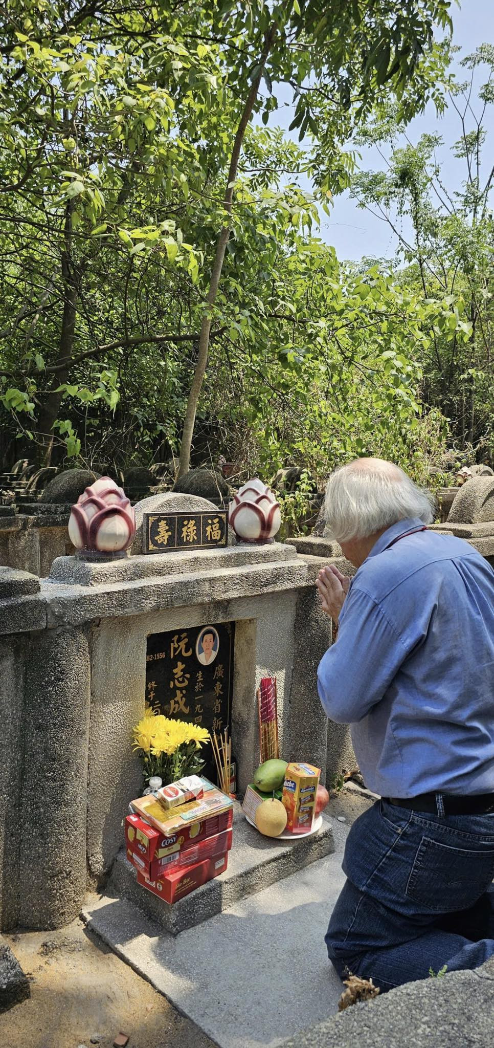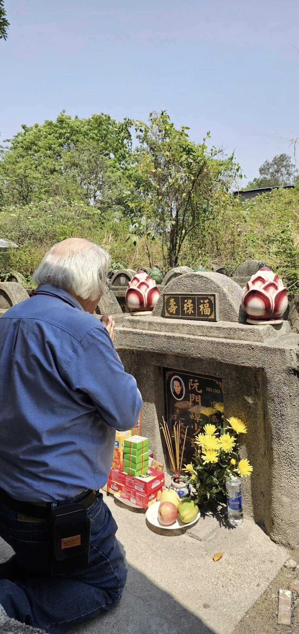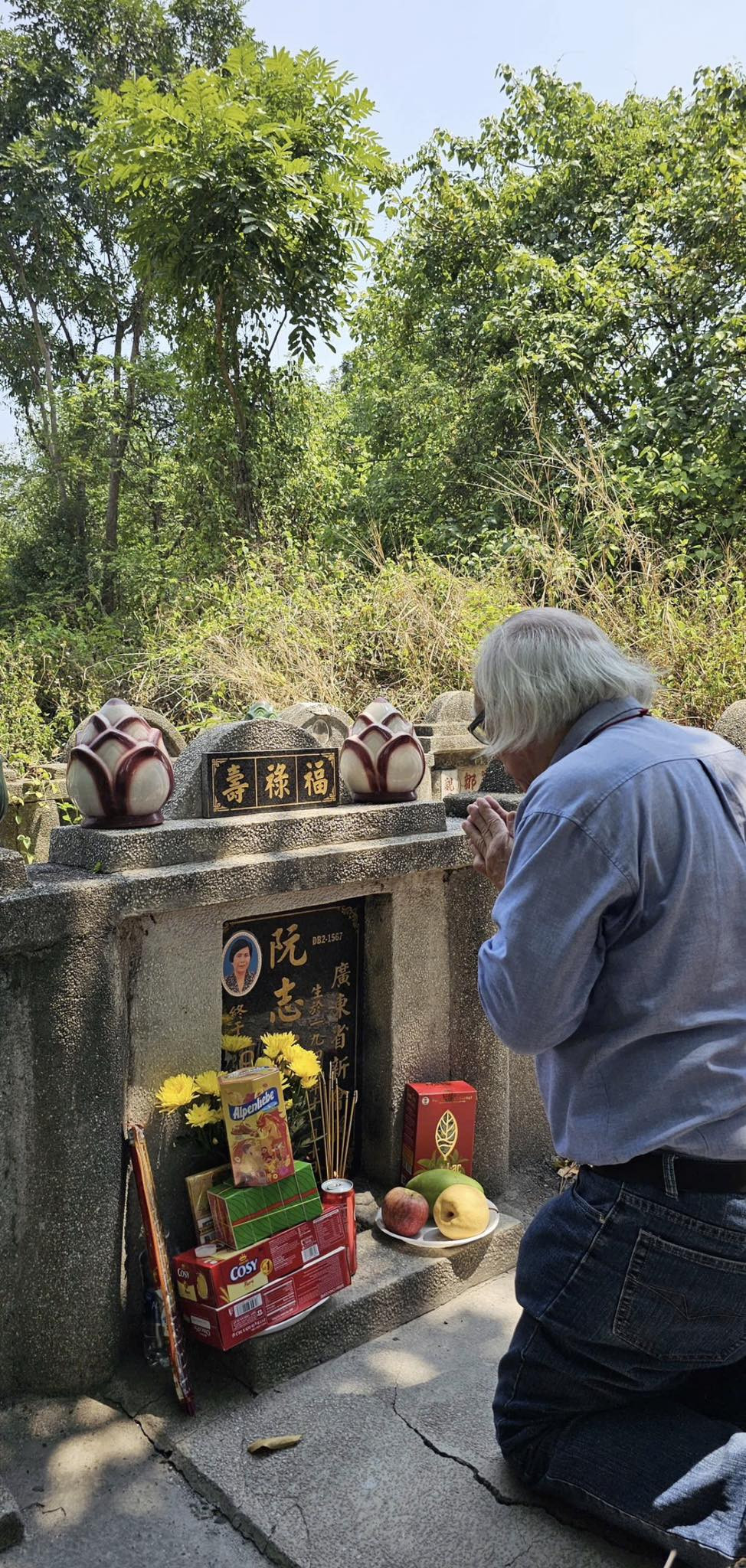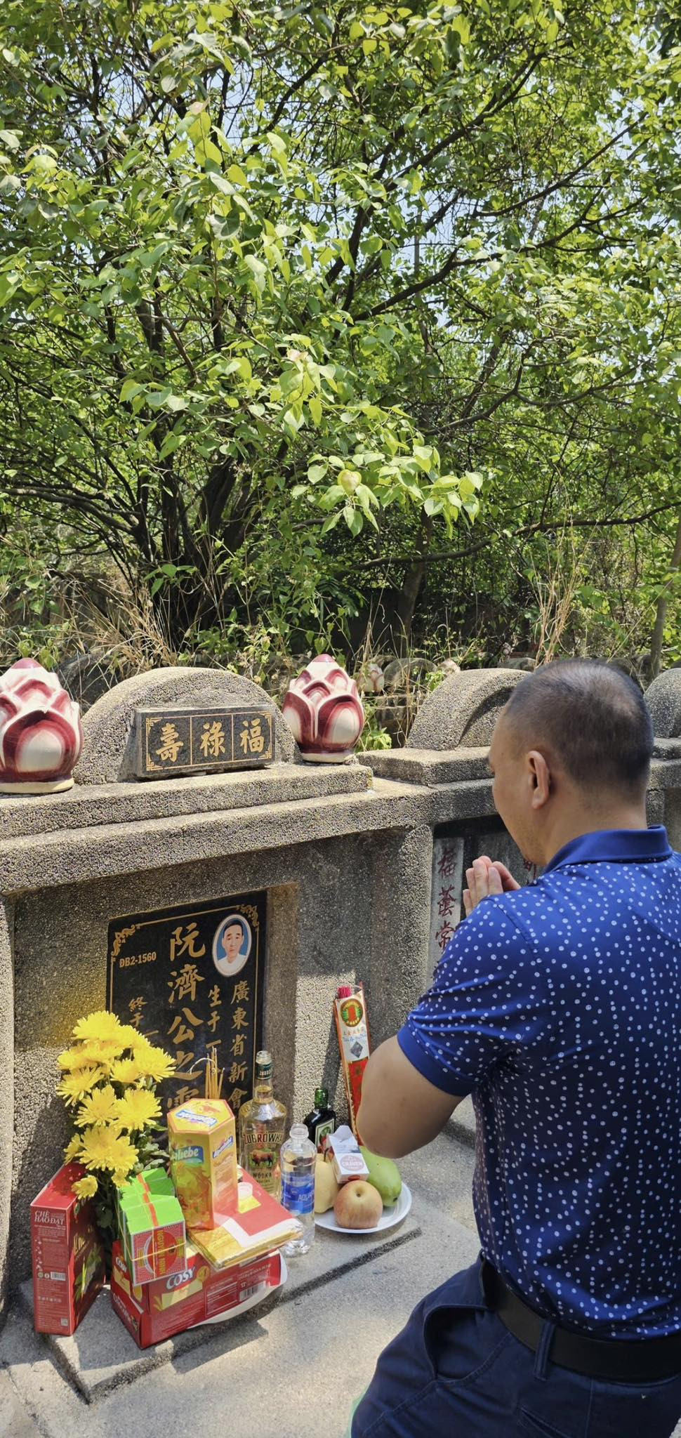 Ngồi trước mộ Sư tổ, tôi thành tâm cầu mong Sư tổ phù hộ cho tôi thực hiện được tâm nguyện với gia đình Sư tổ. Tôi rất tin sớm muộn tôi cũng được Sư tổ phù hộ cho đạt được tâm nguyện này.