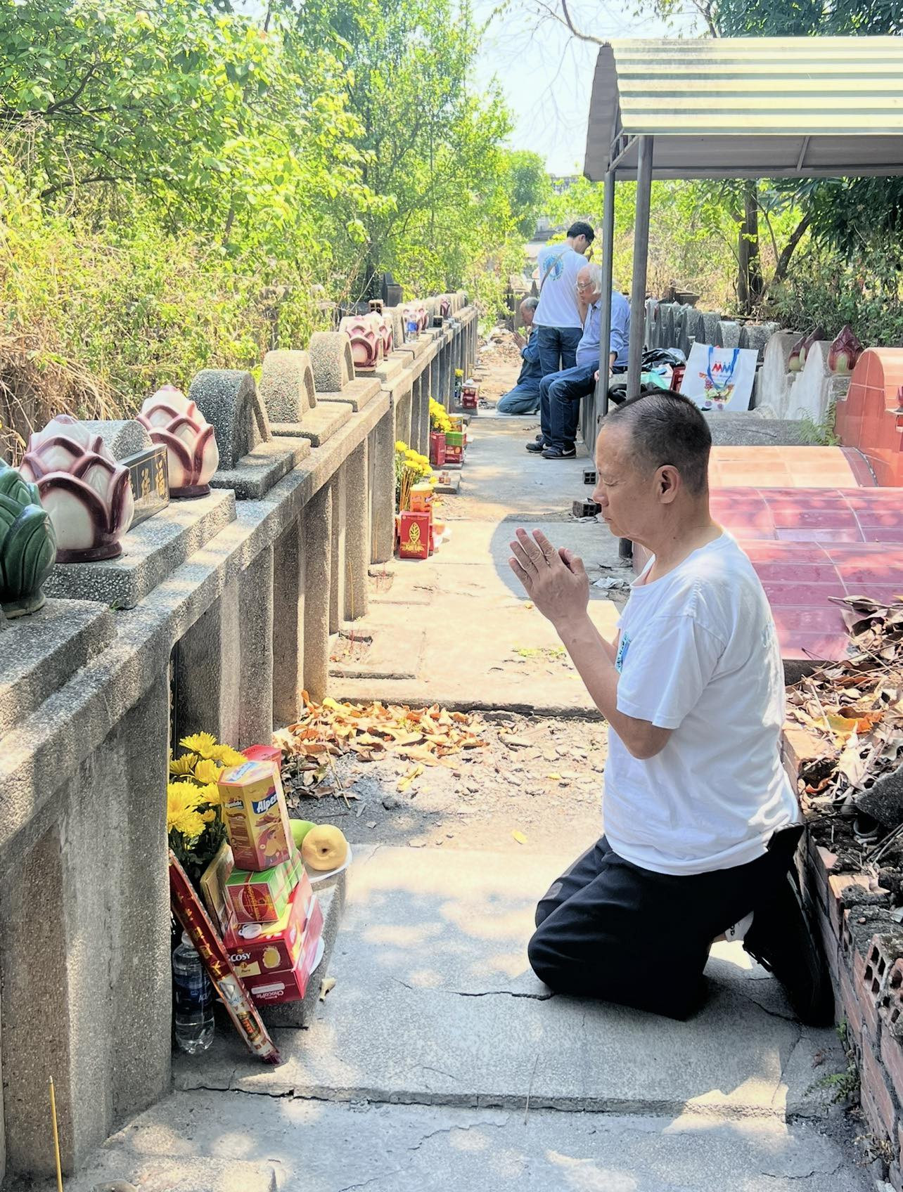 Thầy trò chúng tôi đã cùng nhau sắp Lễ và lần lượt kính lễ mộ Sư tổ Nguyễn Tế Công, mộ Sư tổ Mẫu Đàm Thiếu Quỳnh, mộ chị Nguyễn Chí Dzung, mộ anh Nguyễn Chí Thành.